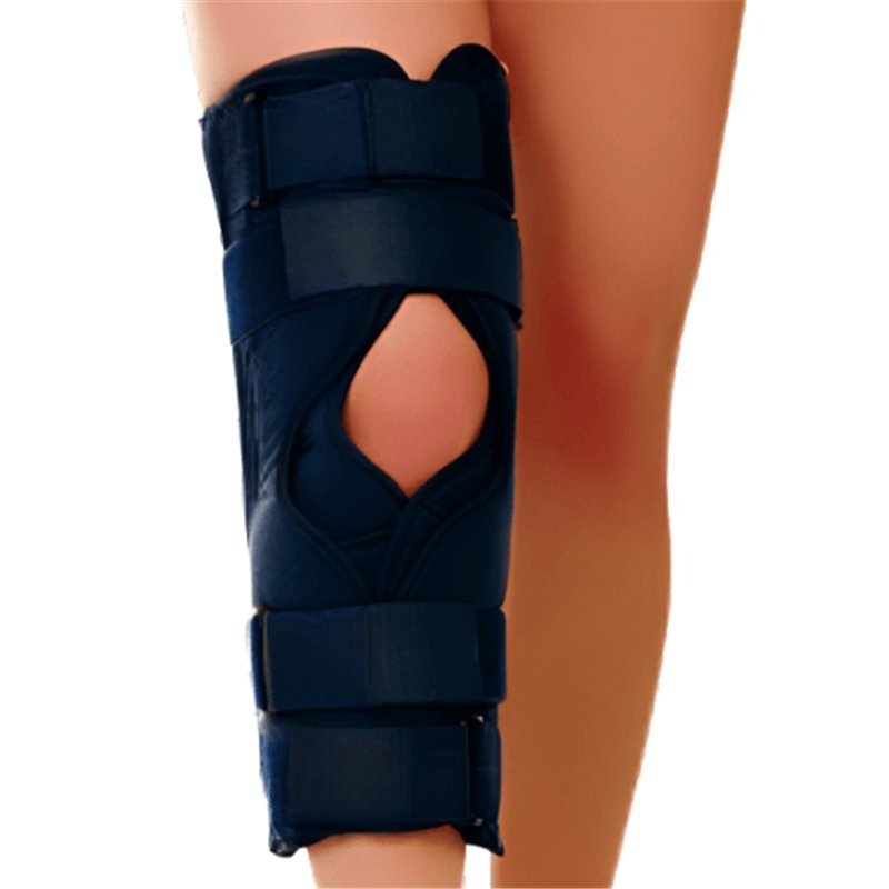 Inmovilizador de rodilla que se adapta a diferentes circunferencias de la pierna.